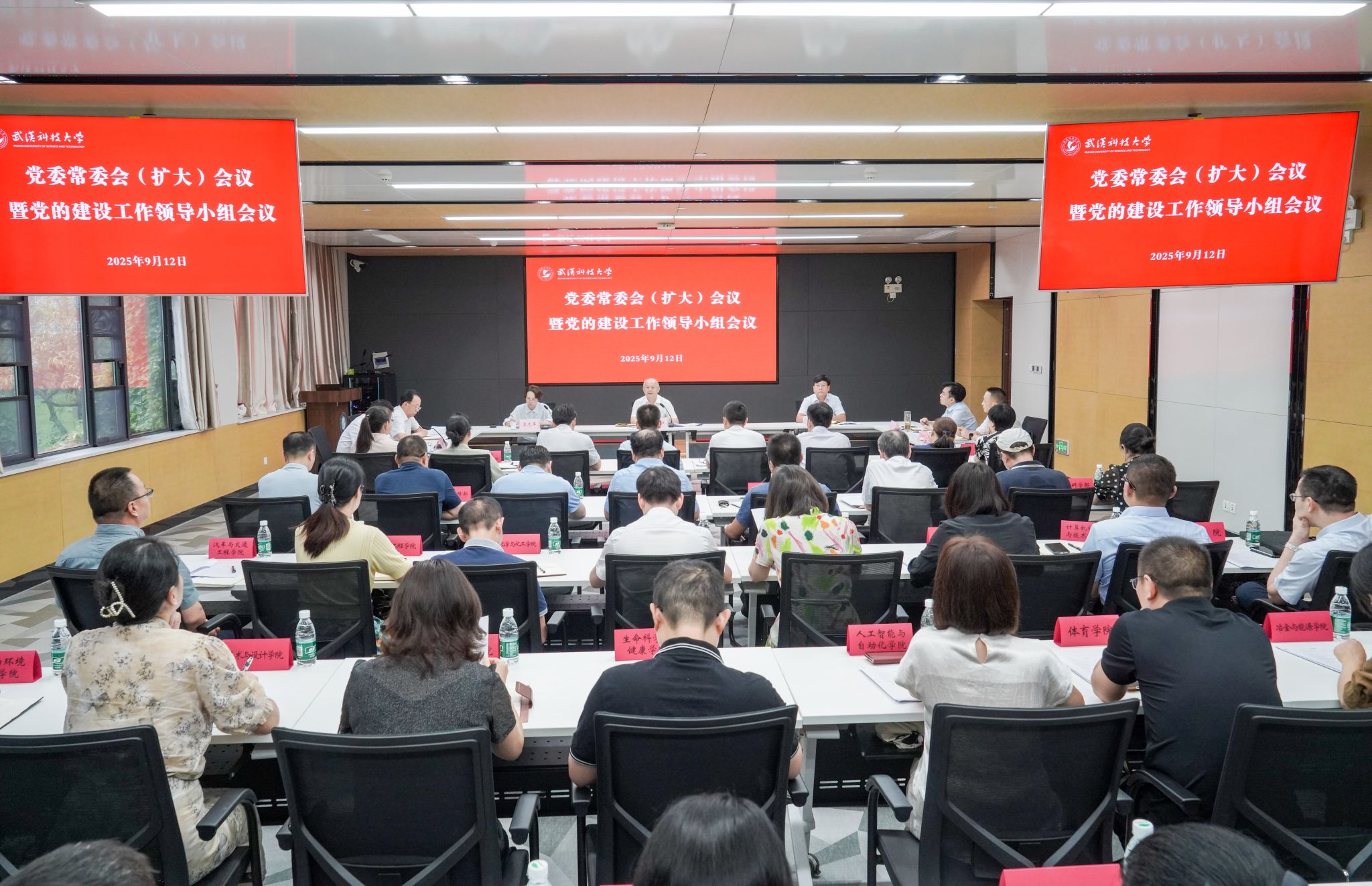 武科大网讯 9月12日,学校召开党委常委会(扩大)会议暨党的建设工作领导小组会议,党委副书记、校长倪红卫主持会议并讲话。全体在校校领导、党的建设工作领导小组成员单位主要负责人、二级党组织书记参加会议。