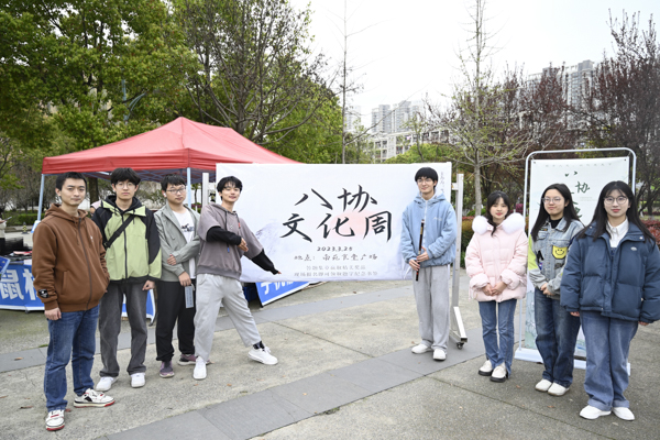 为提高在校师生的文化素养和审美修养,培养广大学生艺术兴趣和爱好,促进师生共同感受传统文化之美,3月25日,我校懿行国学社、潇湘雨诗词协会、笛箫艺术协会、书画艺术协会、摘星棋社、汉文化社、红楼梦协会、图书馆读者协会等八个传统文化社团于南园食堂前,开展了2023年度八协文化周活动。(金如梦 熊雄)