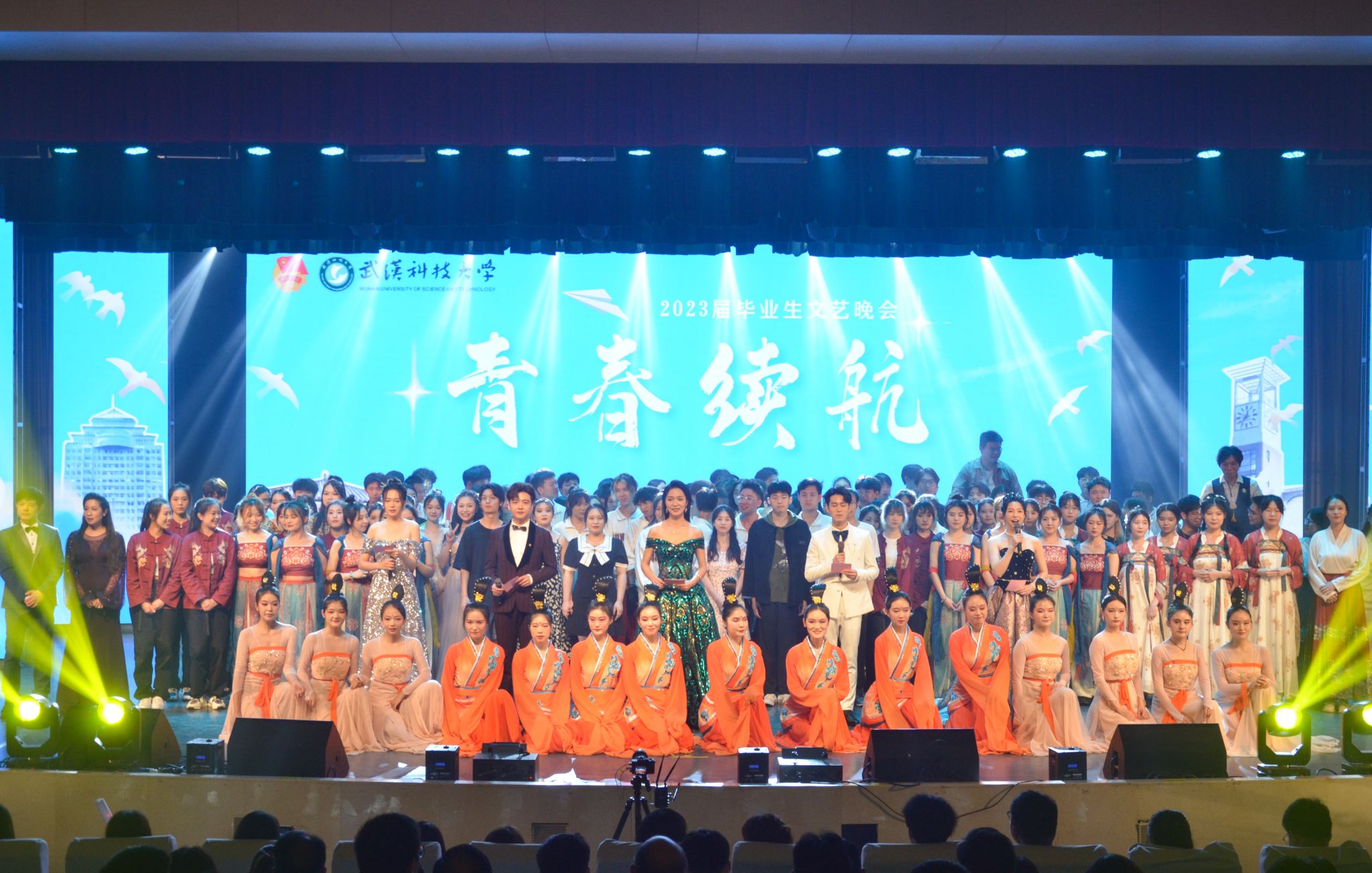6月18日晚,为欢送我校毕业生,我校于沁湖礼堂举办2023届青春续航毕业生晚会。《盛世国乐》拉开了晚会的帷幕。晚会共分为三个篇章。第一篇章为《沁水青山初相遇》,节目为拉丁舞《绽》、沁湖之声合唱团带来的《Fly to the moon》以及魔术表演《梦回沁湖畔》。第二篇章为《星河为路·展风华》,节目有舞蹈《千年画卷》、相声《校园杂谈》、诗朗诵《是你,是我》以及沁湖之声合唱团带来的《启程》。第三篇章为《此去乘风·铸梦想》,节目有小品《请回答2019》、舞蹈《漆奁楚女图》、歌曲《月亮舞台》以及舞蹈《Now Ready Go》。最后晚会结束,众人合影留念。(梁绮琪 王政全)