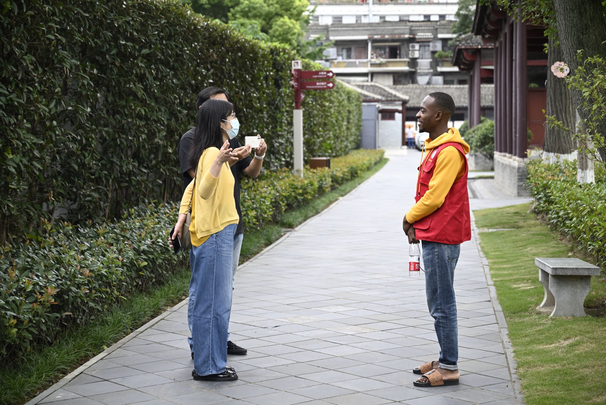 志愿者与国际学生合影 熊雄摄