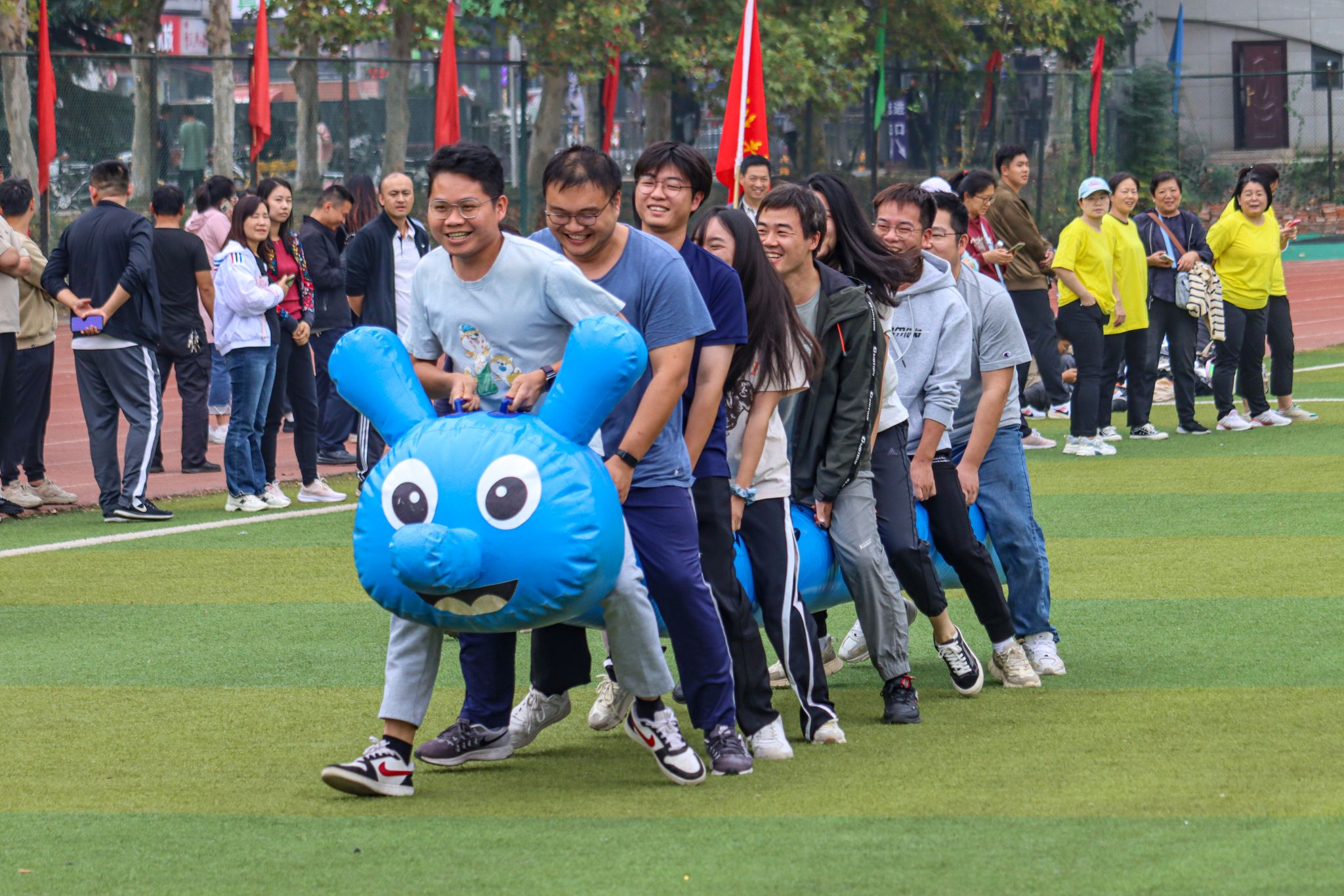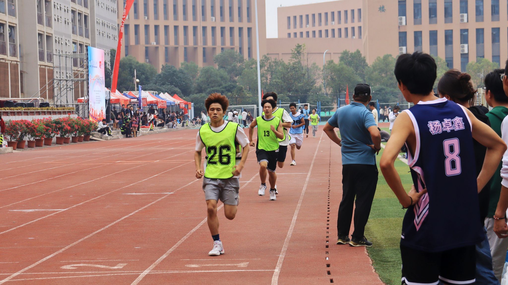 10月26日至28日,我校于南苑运动场举行第六十一届运动会,现场进行了各项田径比赛和集体趣味项目,赛场上运动员们发挥各自优势,在赛场上挥洒汗水,展现了团结、奋进、拼搏、进取的体育精神,各个学院的志愿者们时刻关注运动员的情况,及时为他们送上运动饮料。各个学院的拉拉队也各展绝活为运动员们加油喝彩。(金如梦 郭劼)