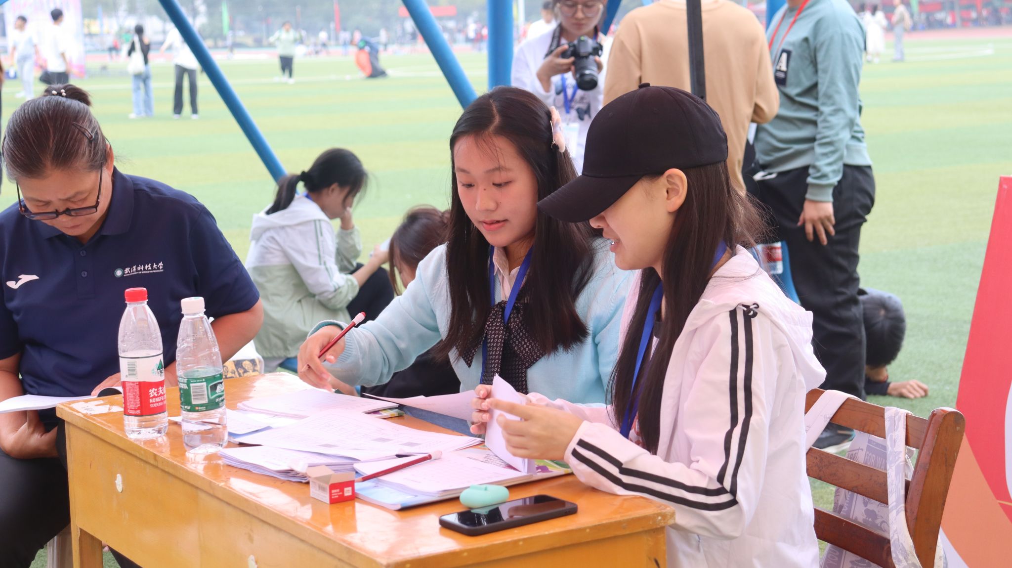 裁判员核对运动员名单 金如梦摄