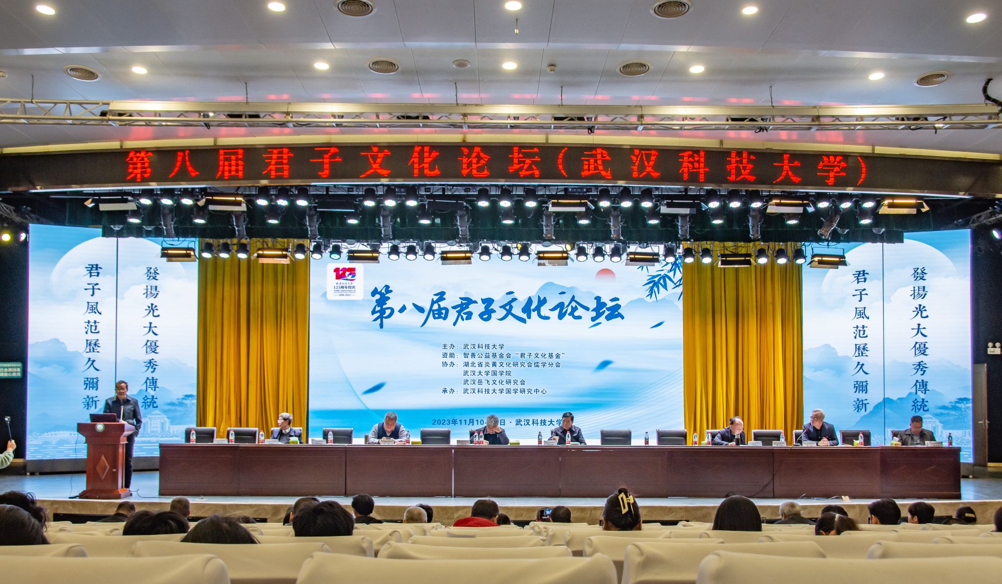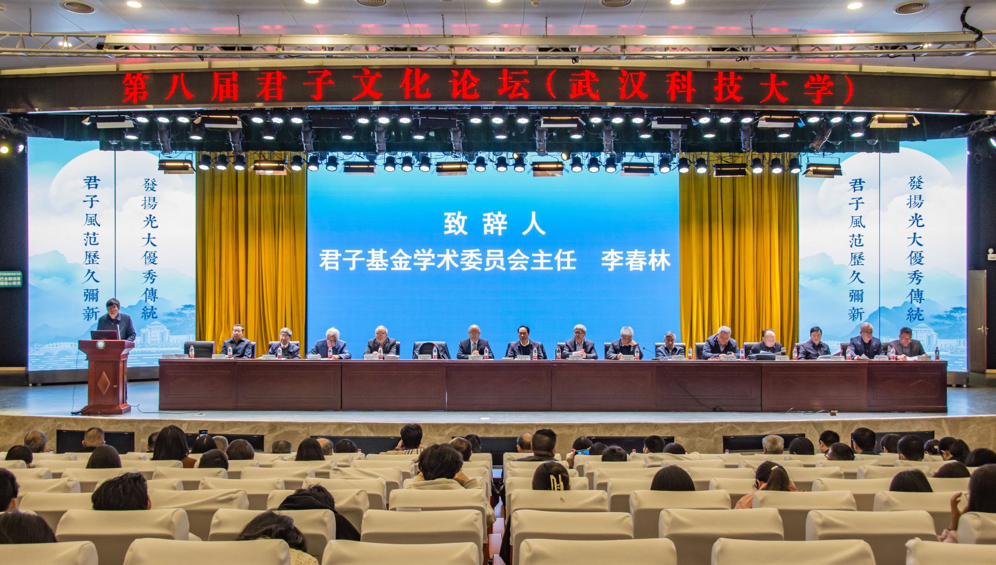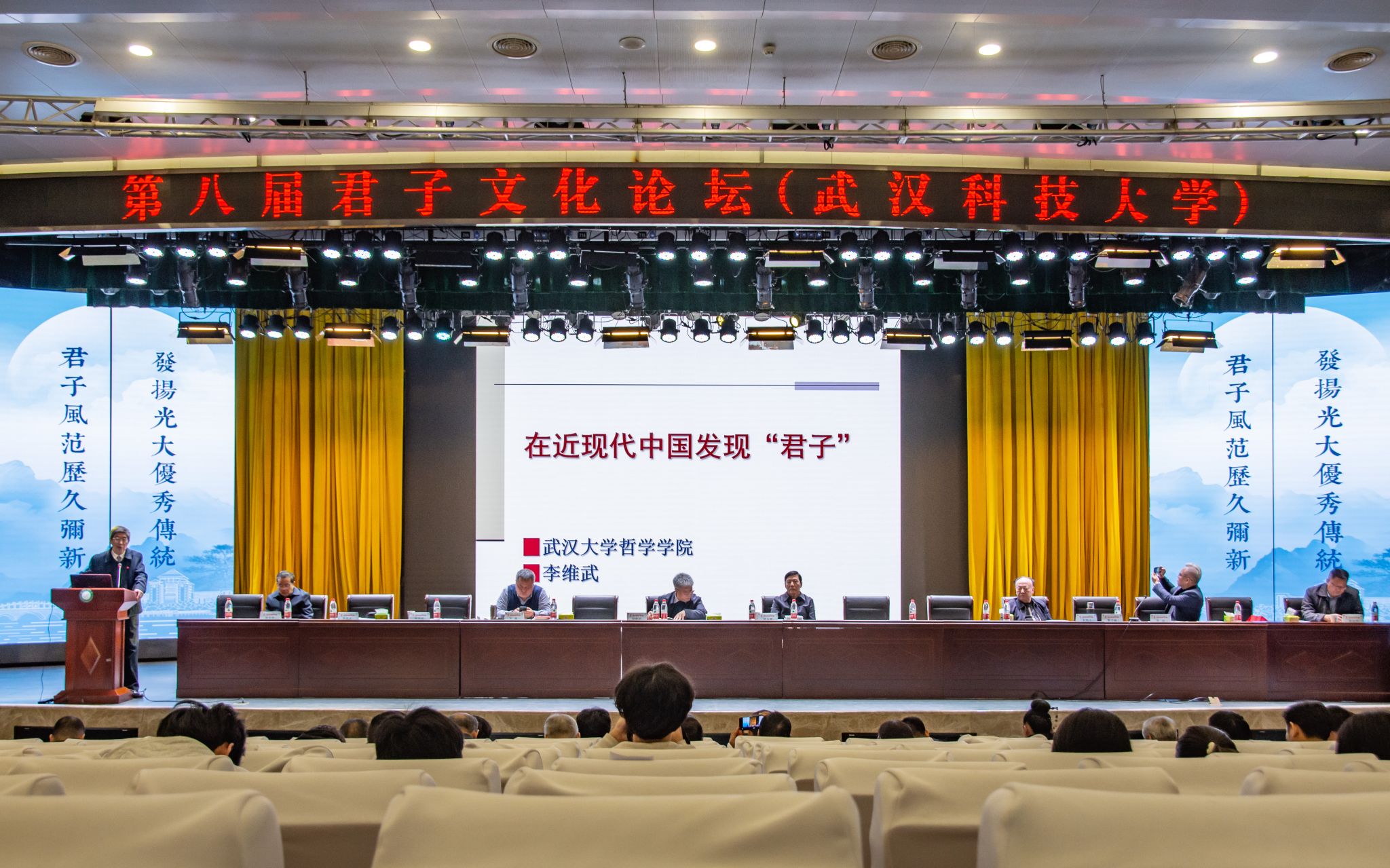 君子风范历久弥新,发扬光大优秀传统。11月11日,第八届君子文化论坛开幕式在我校青山校区钢铁楼碧园会堂召开,本次论坛讨论的主题为“君子文化的知与行”。来自全国高校、科研院所、君子文化研究机构的专家学者和我校师生300余人齐聚一堂,共话君子文化传承与创新。校长倪红卫,光明日报社原副总编辑李春林,著名作家周大新,中央党校教授、中国实学研究会会长王杰出席开幕式并致辞。校党委常委胡剑主持开幕式。