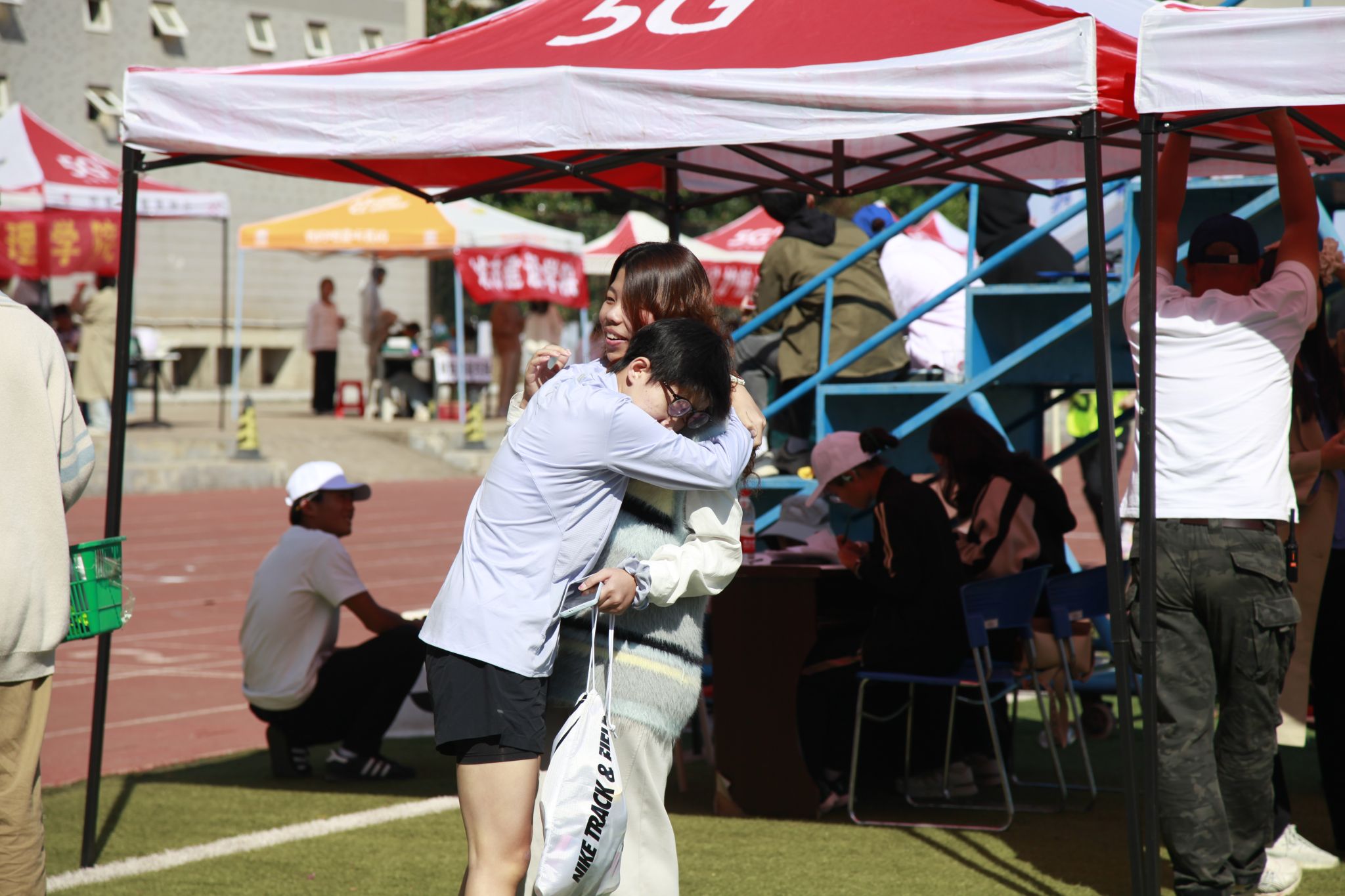 选手赛后与好友拥抱 吴颖摄