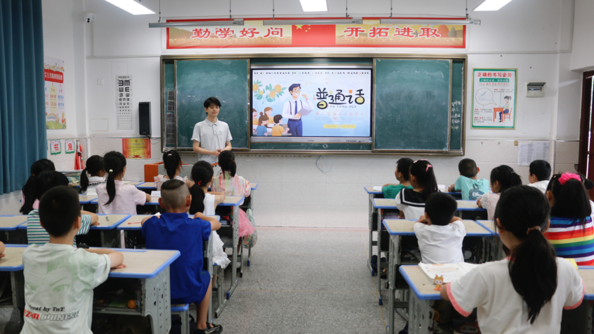 郧西县地处湖北西北部,多山地丘陵,历史上因地理条件限制,部分乡镇与外界交流较少,形成了独特的方言环境。随着交通条件的改善,当地与外界的联系日益紧密,推广普通话成为打破“小范围方言隔阂”、促进区域融合的重要举措。课程中,刘烁以普通话的发展历程为切入点,结合我国多方言、多民族语言的特点,向学生们阐释了推广普通话的必要性。“普通话是连接不同地域、不同民族的纽带”刘烁说,“它不仅能帮助大家更好地沟通,还能为未来的学习和生活打开更多机会。”
